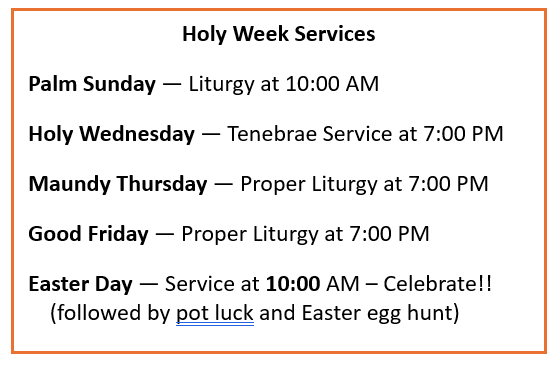 Evening Prayer, Wednesdays at 7 p.m. on Zoom. Click here for the link.
